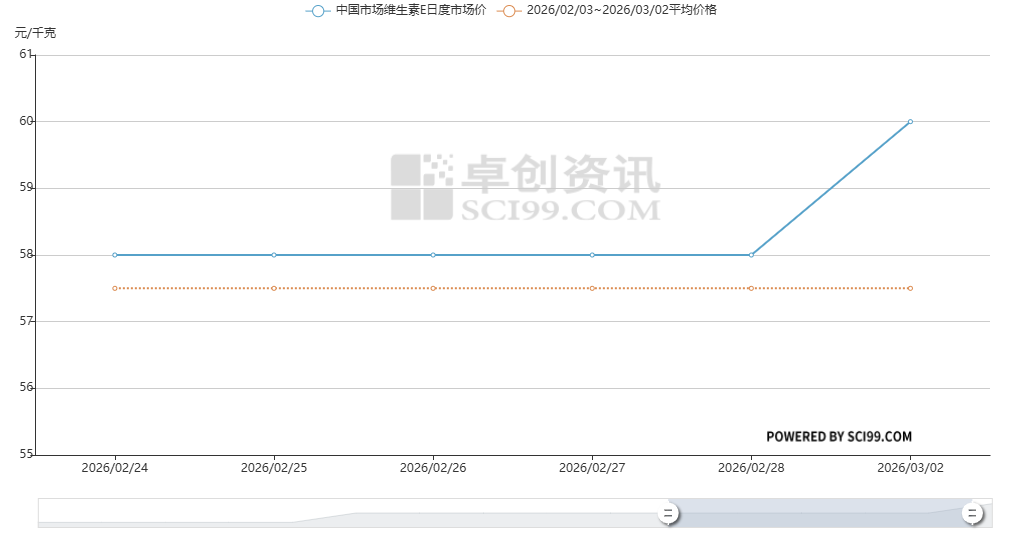 价格端,卓创资讯数据显示,3月2日,维生素E报价60元/千克,单日上涨3.45%。